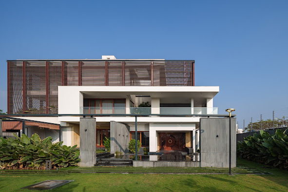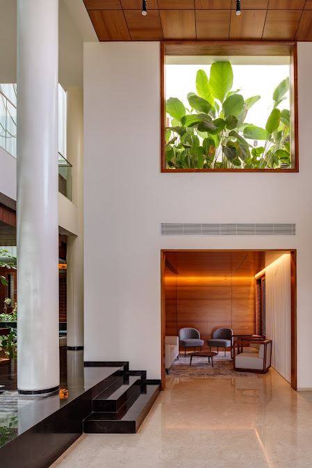 At first glance, the front facade challenges traditional glass structures, opting instead for a dynamic curvilinear mass punctuated by twists and turns, interspersed with voids. This departure from norms not only captures attention but also integrates the shop harmoniously with the surrounding corridor, transforming it into a monolithic architectural entity.