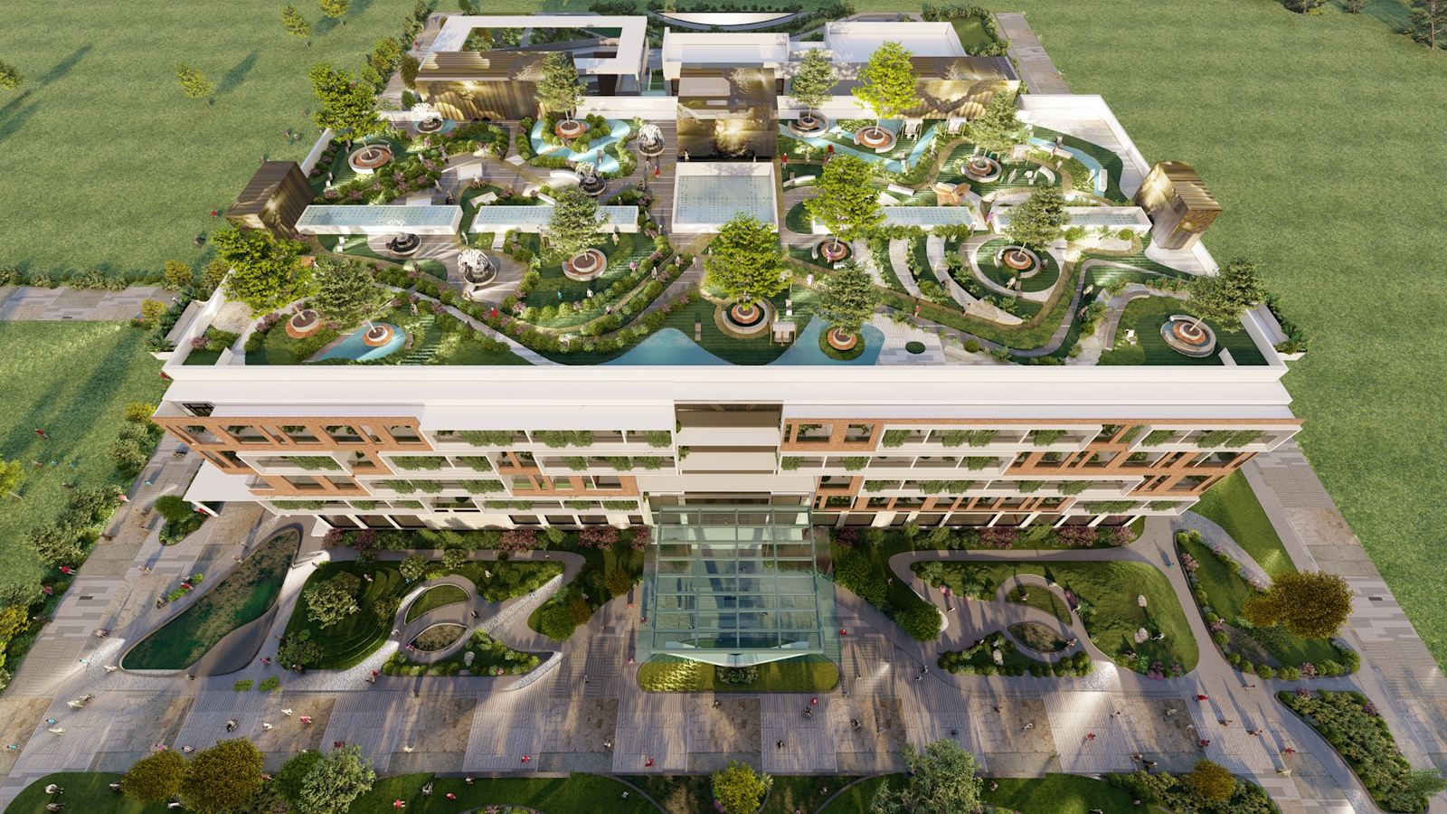 The highly equipped wellness centre comprises of vast facilities as follows: hydrotherapy pool, specially designed and well equipped OT , multi faith room at each floor providing a diverse experience for the users, large exercise area with therapy cubicle ,vast space dedicated to physiotherapy amenities like badminton court at the rear side, beautifully designed and as the day unfolds, the terrace garden transforms into a vibrant oasis of life and activity.